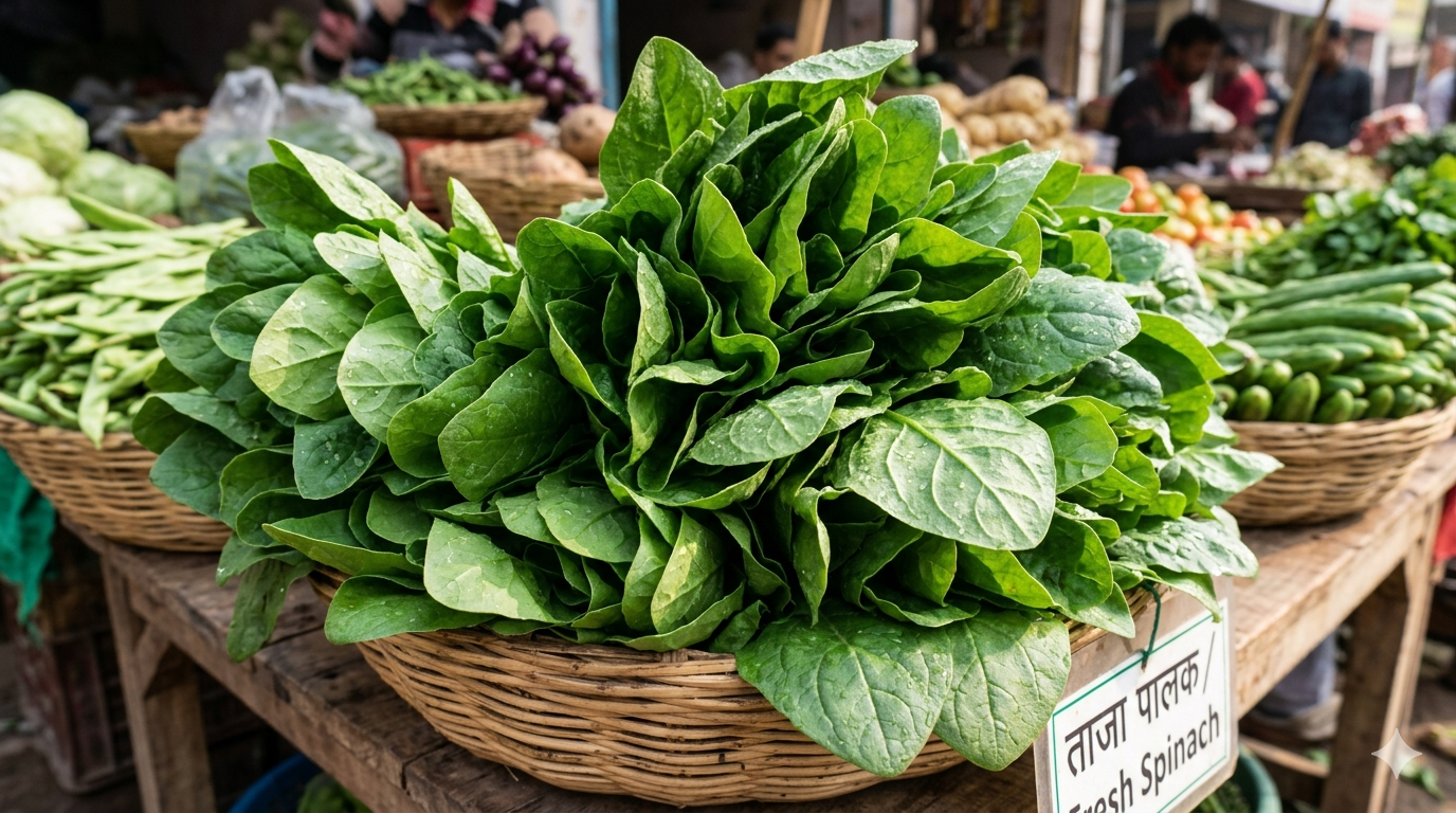 आयरन से भरपूर ताजा पालक, प्राकृतिक खेती से। रक्त और इम्युनिटी के लिए उत्तम।