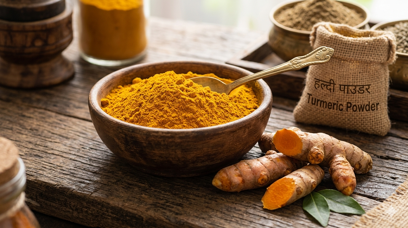 शुद्ध हल्दी पाउडर, प्राकृतिक खेती से। उच्च Curcumin, बिना मिलावट। सीधे खेत से पैक।